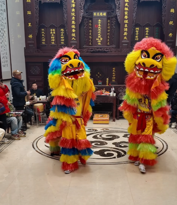 每年正月初一到正月十五,是上两丝村最热闹的时候,在外地的村民纷纷返回家乡,参与到舞龙舞狮的队伍当中。舞龙舞狮的表演场所多选在堂屋内,这里供奉着祖先牌位,是“比较正式和隆重的场合”,彰显一种仪式感和隆重感。
