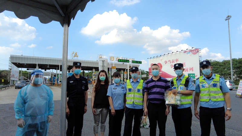 物资保障组并非仅仅守于仓库,还时常奔赴一线。他们曾特意赶赴陆区高速公路卡口,给值守的公安人员、交警人员以及城管人员送去N95口罩、防护面罩以及防护服等急需物品。除了防疫物资之外,他们还精心准备了包含清凉用品的防暑爱心包。