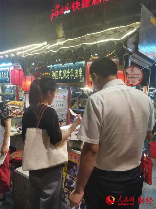 从因防控疫情而冷清,转而重新恢热闹之势的鼓楼夜市,孙国庆所经营的摊位跟前再次排拢长达队列,在疫情防控步入常态化情形下中,常人原本按部就班的生活开始渐渐回复到正常状态,而这般充满生活气息的热闹氛围,恰恰是城市具备蓬勃所展现出最佳有力依据有着充分说服力的证明示例。