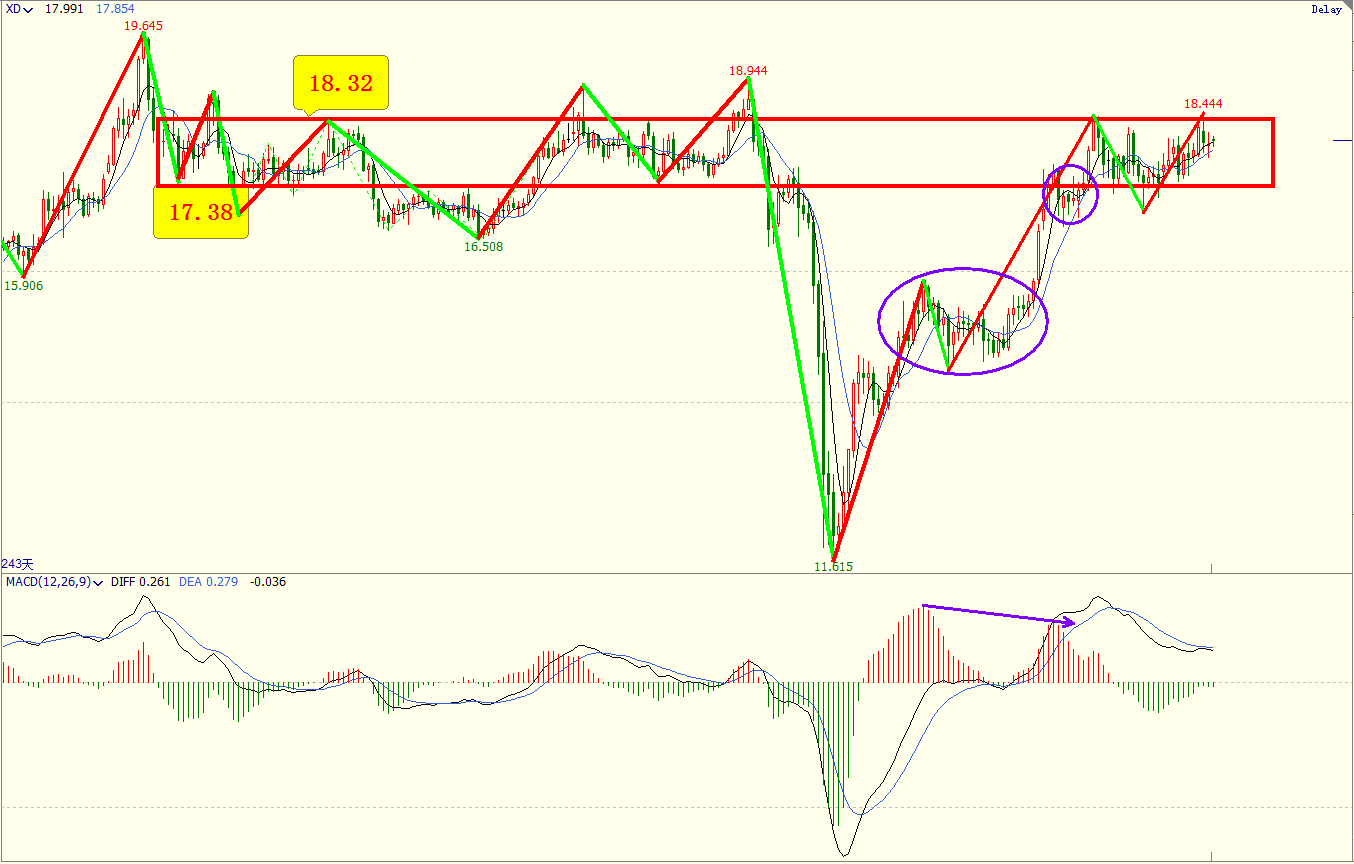 周线上涨速度太快致使5日均线跟10日均线的乖离率偏大,白银这方面,这样状况须紧惕技术调整风险,白银当前运行于震荡中枢17.38至18.32美元每盎司内,若有效击穿中枢低点,那么短期走势或许会从震荡转至下滑有。