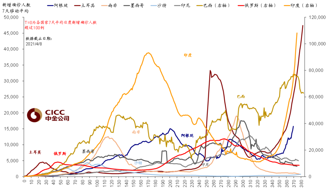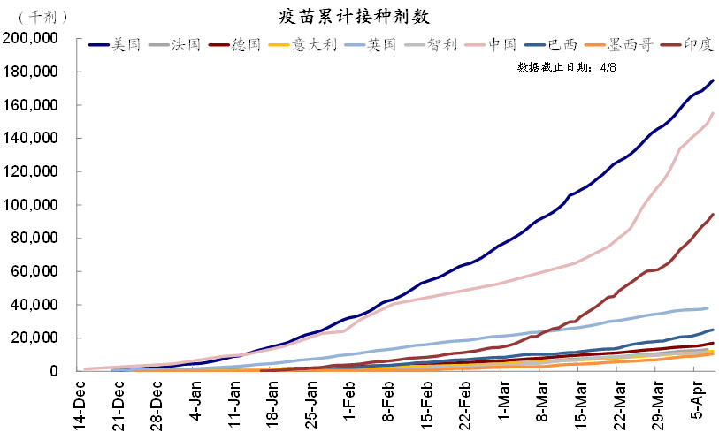 疫情走势在新兴市场呈现出显著的分化状况,印度、土耳其以及阿根廷的情形持续变差,就连新增确诊病例数都已经超过了之前的高点,医疗体系正面临着极大压力,尤其是印度,每日新增病例数屡屡创造新的高度,已然成为全球疫情的新聚焦点。