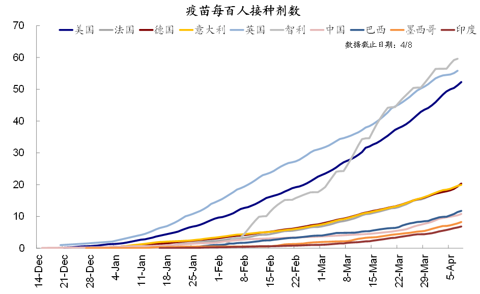 欧洲大陆的接种速度,仍然是相对滞后的状态。法国每百人接种剂数为19.3剂,德国每百人接种剂数为20.3剂,意大利每百人接种剂数为20.0剂,远远低于英国的46.9%。德国的接种速度,虽然是有提升的情况,然而法国和意大利本周致使出现下降,这大概能够解释为何欧洲大陆疫情拐点到来比英国缓慢。