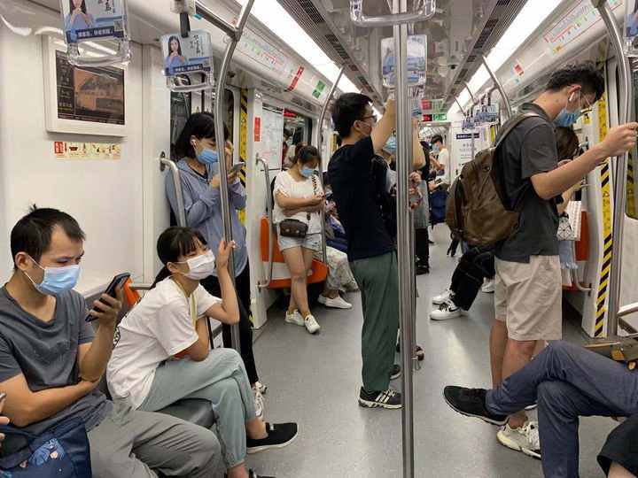 乘坐地铁的乘客大多配合状况颇为不错,在站台之上和车厢以内佩戴口罩的行为符合范例规范有章可循。这样的成果可以收获得益于长时间稳固坚持的广播通知警醒点明加以说明清晰标记引人瞩目以及众多个众民众渐渐逐步养成形成既定的习惯模式。地铁作为城市之中的关键交通动脉主要渠道,它的防止控制稳固坚定执行实施对于整个社会范畴的防疫守护信念信仰有着重要意义价值支撑作用帮助。
