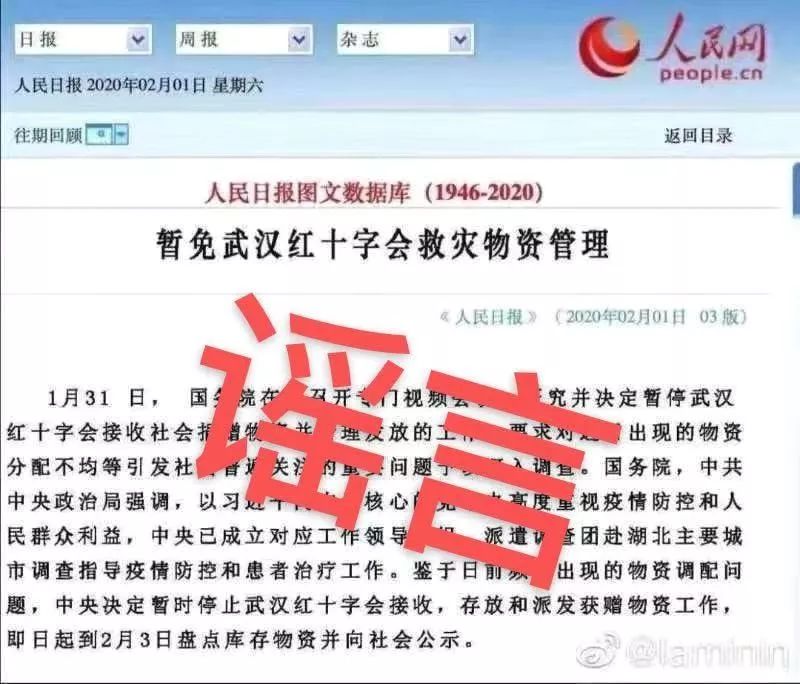 一幅被伪造的《人民日报》截图于网络之上疯狂传播,宣称国务院暂令武汉红十字会停止接收社会捐赠的物资,记者对2月1日纸质版《人民日报》第三版展开查阅,压根不存在这则报道,伪造的截图破绽诸多,存在新闻要素缺失的状况,标题欠缺主语,正文格式有误。
