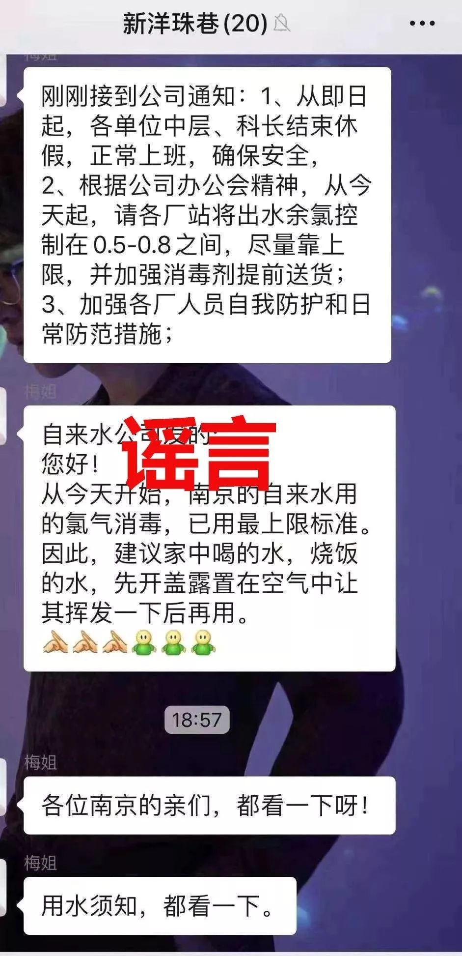 让不少南京市民担心的是,“南京自来水氯气消毒已用最上限标准,建议烧饭喝水先挥发氯气”这样的消息。1月31日早晨,南京市委宣传部新闻发布官方微博紧急辟谣,明确指出南京市自来水水质优良,完全符合国家标准,市民能够放心饮用。