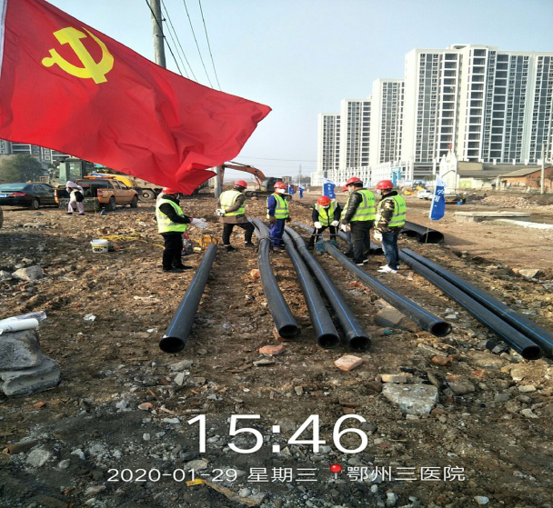 雷山医院从动工直至交付仅仅用了10天,水务突击队紧跟着推土机进入场地。1月29日晚间,接到临空经济区留观点的通水指令,6名焊工于零下2度的工地蹲守了一整夜,次日早上7点,卫生间水龙头拧出了自来水。这并非只是个别的情况。