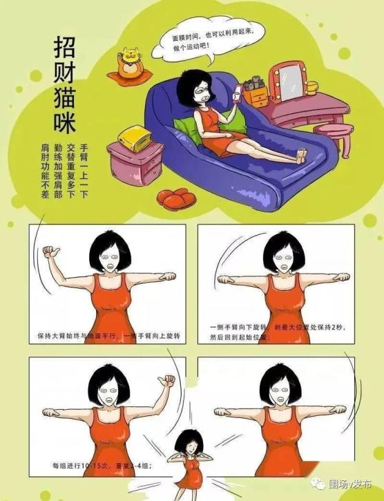 那个被叫做招财猫咪的名字极具形象性,手臂如同招财的猫咪那般上上下下摆动,这个动作主要所训练的是肩袖肌群,这些深层的小肌肉平常的时候很难练到,然而它们却是保护肩关节的关键所在,使用弹力带或者徒手均可进行,关键之处在于把控节奏,并非依靠惯性去甩动,对于那些经常抱孩子或者提重东西的人来讲,它能够有效地预防肩峰撞击和肌腱炎。