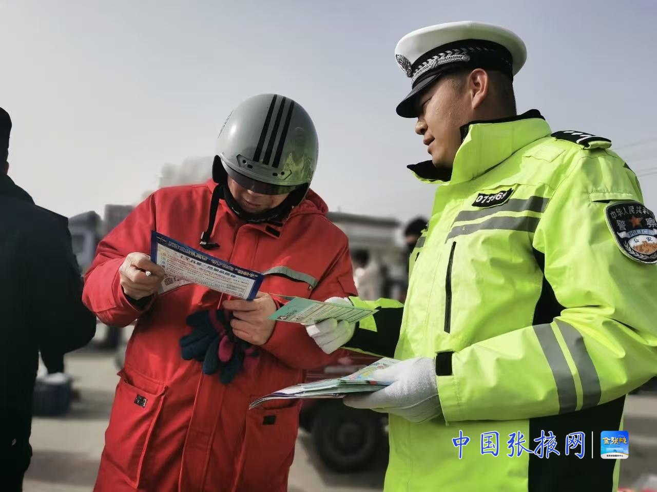 张掖高速东入口处,执勤民警每日检查车辆数量超800台次,他们不但严格检查超员超载情况,还会递送出一张载明相关安全提示的卡片,在2月15日那一天,现场发放提示卡数量达3000余张,签订安全驾驶承诺书数量为1500余份,对于外地车牌车辆,还专门标注了张掖境内存在相应危险的路段。