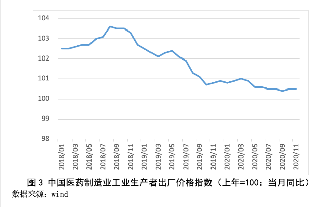 近几年,中国不断提高药品质量以及环保标准,这致使生产成本直接出现上升情况。虽说2020年大宗商品价格存在一定波动,然而对于医药行业整个生产成本的影响相对而言比较有限。行业价格指数维持稳且有升的态势,主要的驱动力源自政策性要求所带来的产业升级。